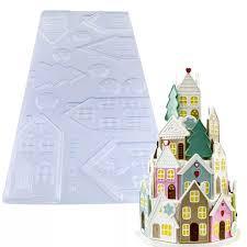 Placa de molde Natalina, casinha, árvore de natal, castelo Forma placa em acetato, ideal para produção de chocolates e doces com muita praticidade.