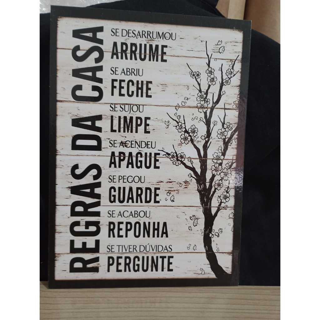 | Placa Decorativa Quadro Regras Da Casa este produto | R$ 22,00 | — | 4.8/5 | — |