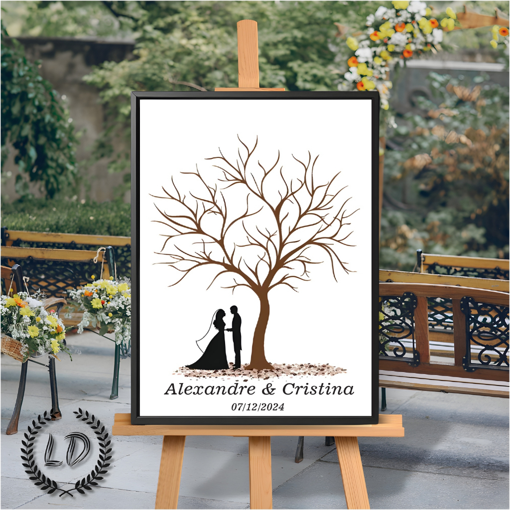 Placa Decorativa Recepção de Casamento Casal Árvore Digitais + Nome e Data Personalizado