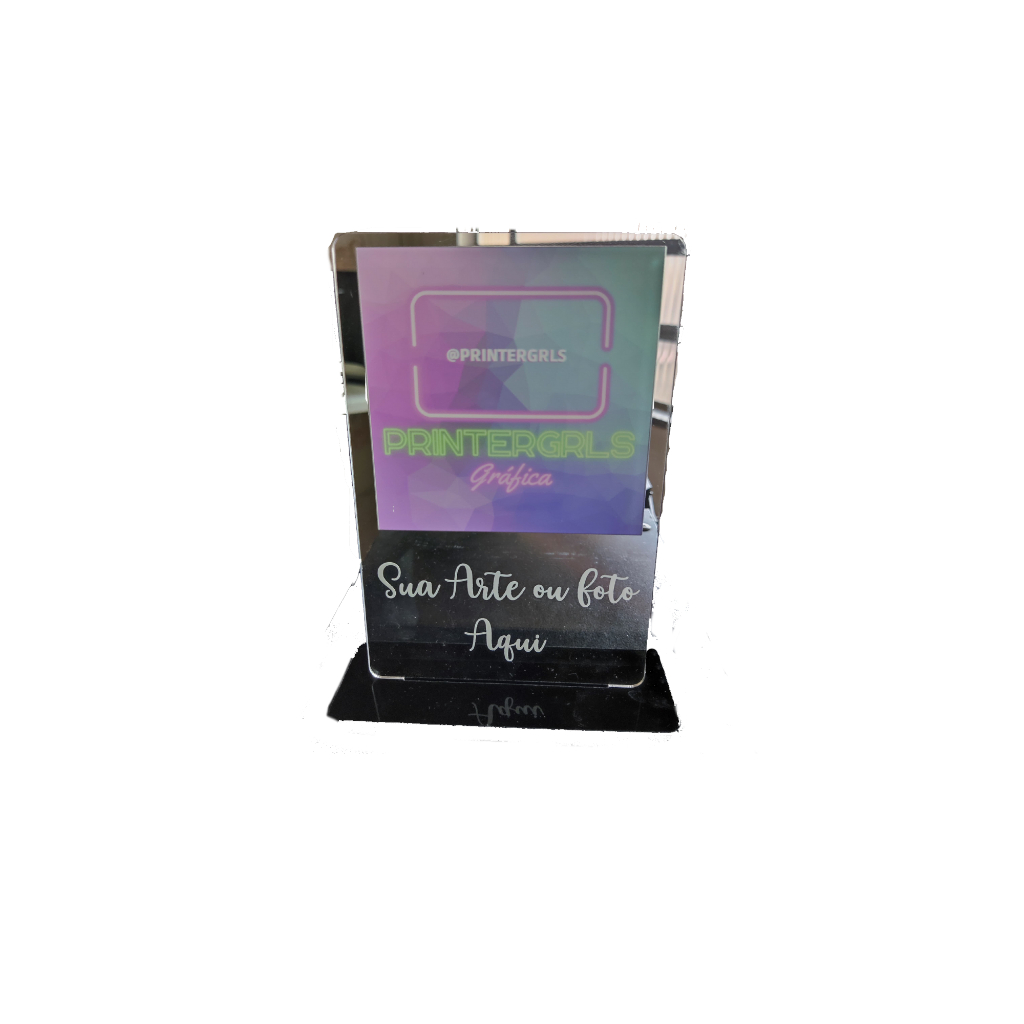 Placa Display Acrilico Transparente Cristal Personalizado Diversos tamanhos com base preta