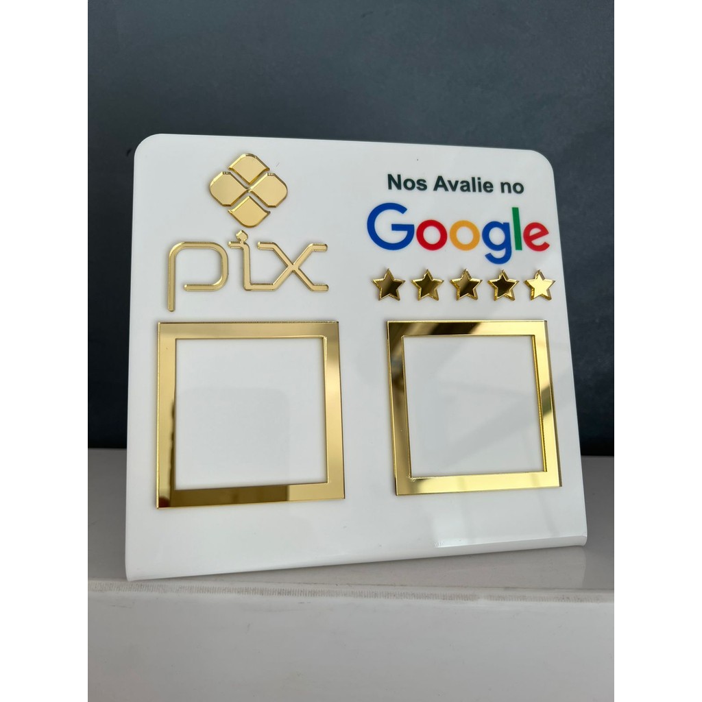 Placa em Acrílico detalhes em Acrílico espelhado. Aproveite essa oportunidade e obtenha a sua Placa com 2 Qr Code para inovar o seu negocio e trazer mais comodidade ao seu cliente! A plaquinha conta com 02 espaços, sendo eles: Pix e Google Avaliação Material Acrílico de 2mm e detahes em acrílico espelhaddo de 2mm Dimensões Largura 16 cm Altura 15 cn Atenção Não geramos e nem fazemos a impressão do qr code. tamanho do Qr code 5 cm por 5 cm