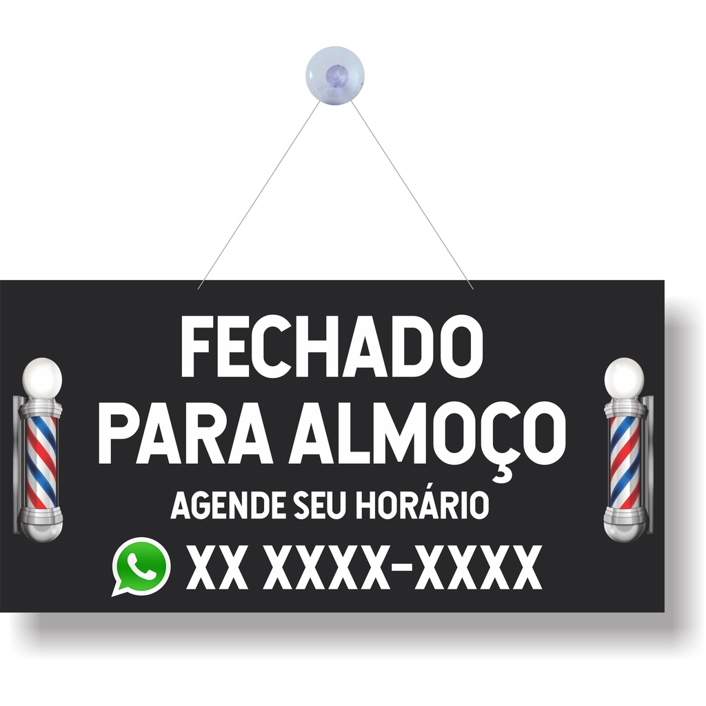 Placa Fechado para almoço Barbearia Bastão Personalizado com whatsapp MEDIDA 15X30 CM PVC DE 1MM Pronta para uso com cordão e ventosa Mais de 15mil placas vendidas e clientes satisfeitos