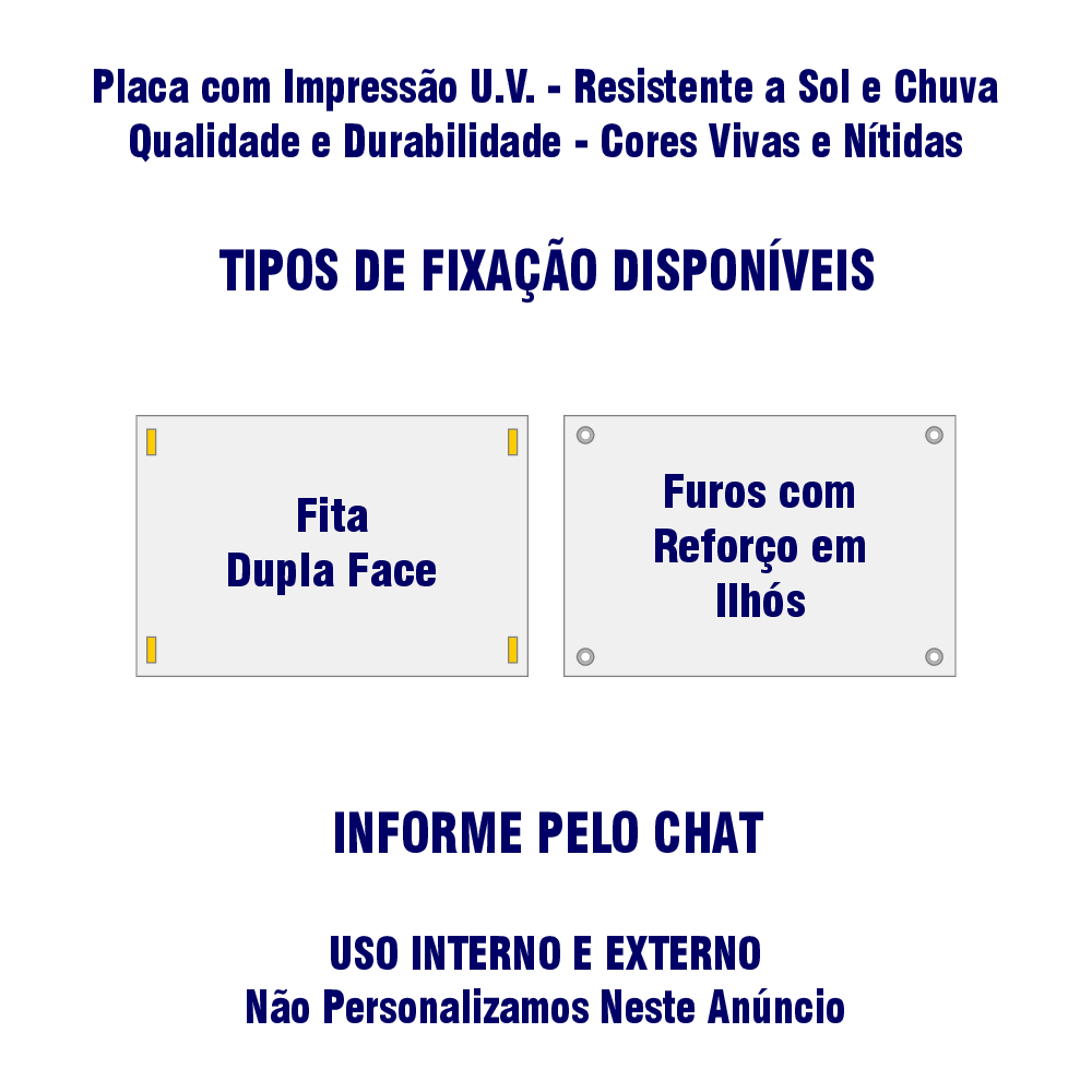 PLACA GARAGEM 24H POR FAVOR NÃO ESTACIONE EM FRENTE AO PORTÃO - 20CMX30CM - PS 1MM ESCLAREÇA SUAS DÚVIDAS ANTES DE EFETUAR A COMPRA. A fixação pode ser feita com fitas dupla face que já acompanham o produto ou furos para abraçadeira de nylon, arame ou parafuso que deve ser feito pelo cliente. Material de fácil furação e aplicação podendo utilizar um objeto pontiagudo. Especificação Técnica: Tamanho: 20 cm x 30 cm Material: Plástico - PS (Poliestireno) 1mm de espessura Impressão Digital de Cura UV Diretamente na Placa, Não é Adesivo! Produto de alta qualidade, ideal para ambientes internos e externos. - Alta Qualidade e Resolução. - Cores Vivas - Ótimo Acabamento Tenha tranquilidade ao comprar com quem está disposto a lhe oferecer o melhor atendimento, caso tenha alguma problema após a compra, conte com nossa equipe de pós-venda para solucioná-lo. Confira nossos outros produtos e economize no frete.