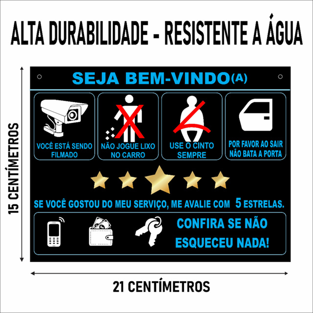 | Placa Informativas para Passageiros de Motorista de Aplicativo este produto | R$ 19,90 | — | 4.9/5 | 14 |