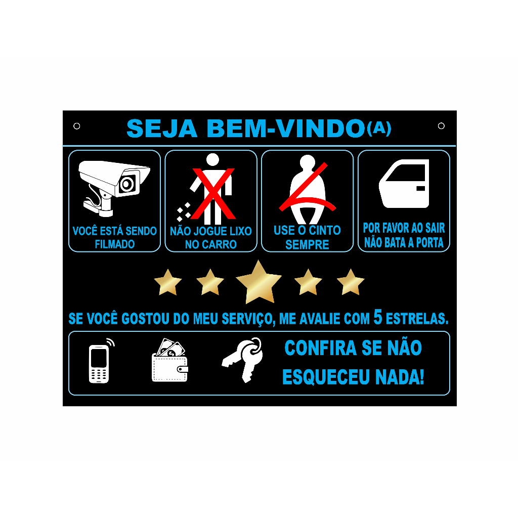 Placa Informativas para Passageiros de Motorista de Aplicativo