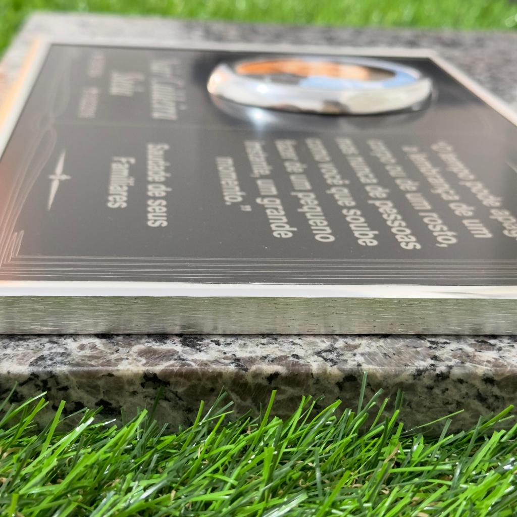 Informações do produto: Placa Bíblia BF600 - 34cm x 23cm (Com foto) Placa gravada a Laser no Alumínio composto com molduras em alumínio cromado. Fotos em porcelanas resistente ao sol e a chuva com moldura em alumínio. Medidas da Placa: 34cm x 23cm Medidas das Fotos: 07cm x 09cm Frase: A frase a ser colocada na placa é opcional. Material não tem comercio de sucata, evitando furtos e vandalismo. Conteúdo da embalagem: - Placa - Cola de silicone para fixação - Manual de Instalação e Conservação - Folheto - "Como superar uma perda?" Ao finalizar o pedido, informar os dados a ser gravado na placa pelo chat.