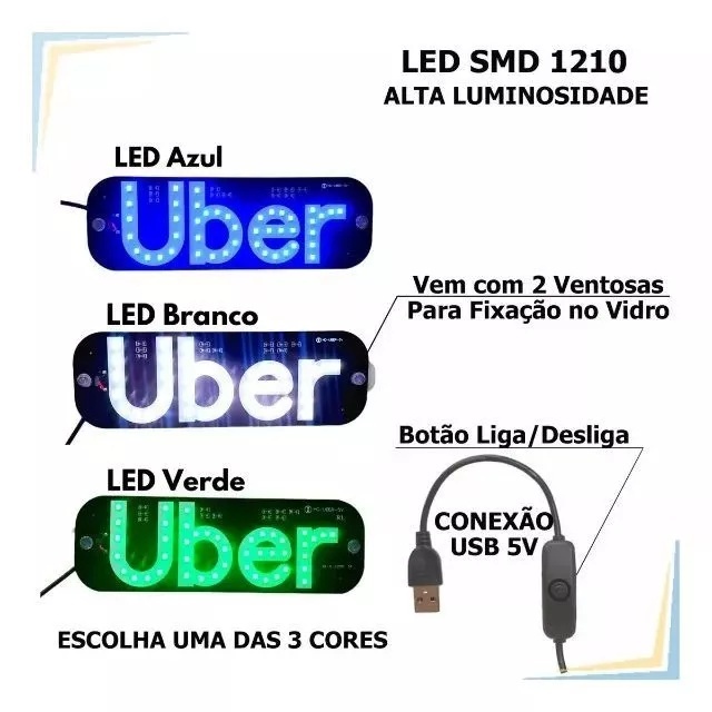 Produto Já vai pronto para uso. Adequado para adentrar em Comunidades. Ideal para Motorista de Aplicativo!! Além disso, é projetada para se destacar e chamar a atenção dos usuários, Facilitando a identificação do Veículo. Ela é instalada no painel frontal ou no para-brisa do carro sem obstruir a visão do motorista, proporcionando uma visibilidade clara para os passageiros em busca de seu motorista. Garantindo uma Experiência mais Segura e Confiável para os Passageiros - Alta Luminosidade - Placa em Acrílico - Cabo mede 1,35m - Possui o Botão Liga/Desliga - Entrada USB Itens Inclusos: 01 Placa de LED. 01 Cabo de USB com Botão Liga/Desliga. 02 Ventosas.