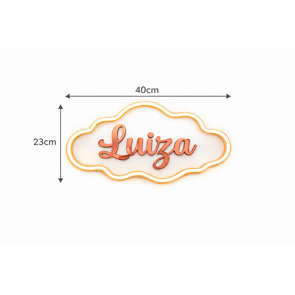 ✨ Placa LED Neon Nome Personalizado – Decoração Moderna e Exclusiva Transforme qualquer ambiente com um toque moderno, aconchegante e cheio de personalidade! A Placa LED Neon com Nome Personalizado é perfeita para decorar quartos infantis, quartos de casal, escritórios, estúdios, lojas ou espaços de eventos, trazendo destaque, charme e uma iluminação suave que valoriza o espaço. Além de ser um item decorativo, ela cria um ponto de luz que deixa o ambiente mais acolhedor e com identidade única, já que é totalmente personalizada com o nome desejado. * Medidas do produto Comprimento: 40 cm Altura: 23 cm Espessura da placa: 3 mm * Características Placa em acrílico transparente Letras em acrílico recortado LED aplicado no produto (efeito neon) Iluminação uniforme e de baixo consumo Produto leve, moderno e resistente * Opções de LED Você pode escolher entre 3 cores de iluminação: Rosa Branco quente Branco frio * Cores Placa: transparente Cor das letras em acrílico: a sua escolha * Personalização Após a compra, envie pelo chat: Nome desejado Cor do LED Cor do acrílico das letras Um produto exclusivo que une design, iluminação e personalização para transformar qualquer ambiente com estilo e personalidade. ✨