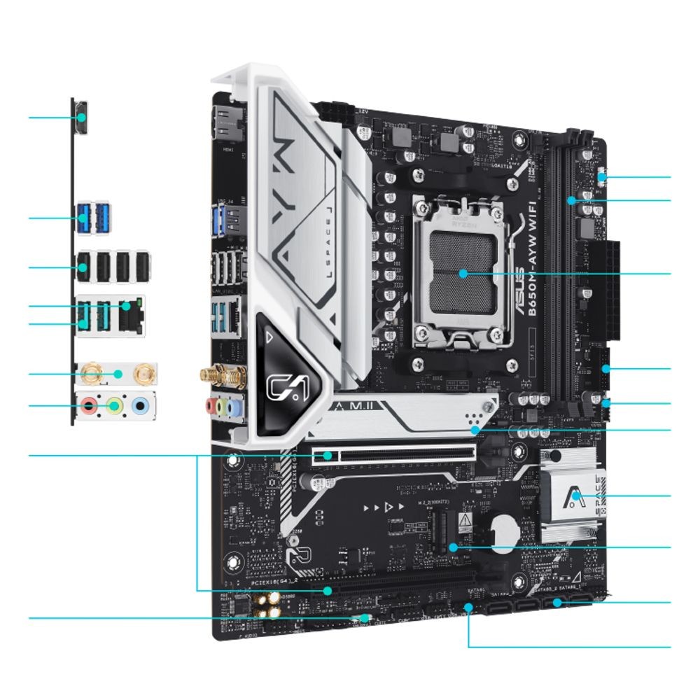 Placa Mãe Asus B650M-AYW WiFi, DDR5, Socket AMD AM5, M-ATX, Chipset AMD B650 - B650M-AYW-WIFI