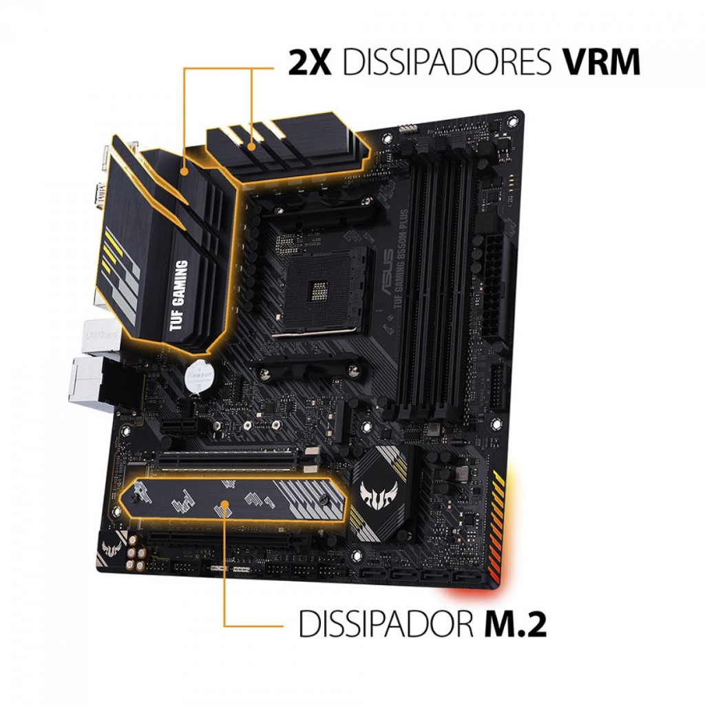 Placa Mãe Asus TUF Gaming B550M-Plus, Chipset B550, AM4, mATX, DDR4, Com Dissipador 90MB14A0-C1BAY0