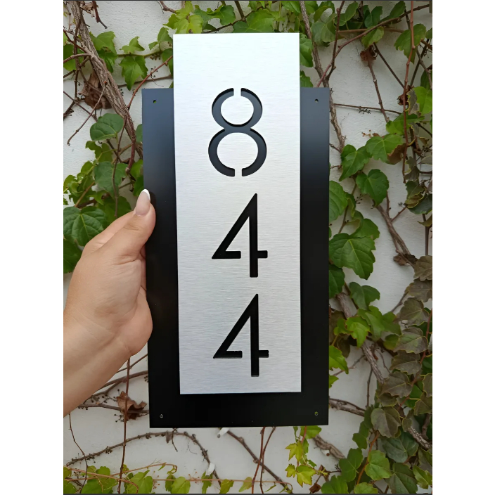Placa Número Residencial em ACM Preto e Alumínio Escovado Personalizado Placa de Casa Moderna