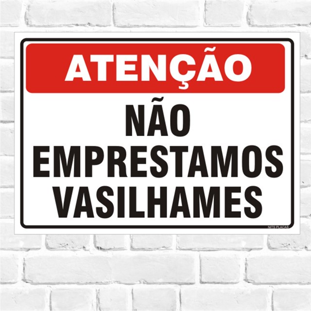 PLACA para conveniências - NÃO EMPRESTAMOS VASILHAMES