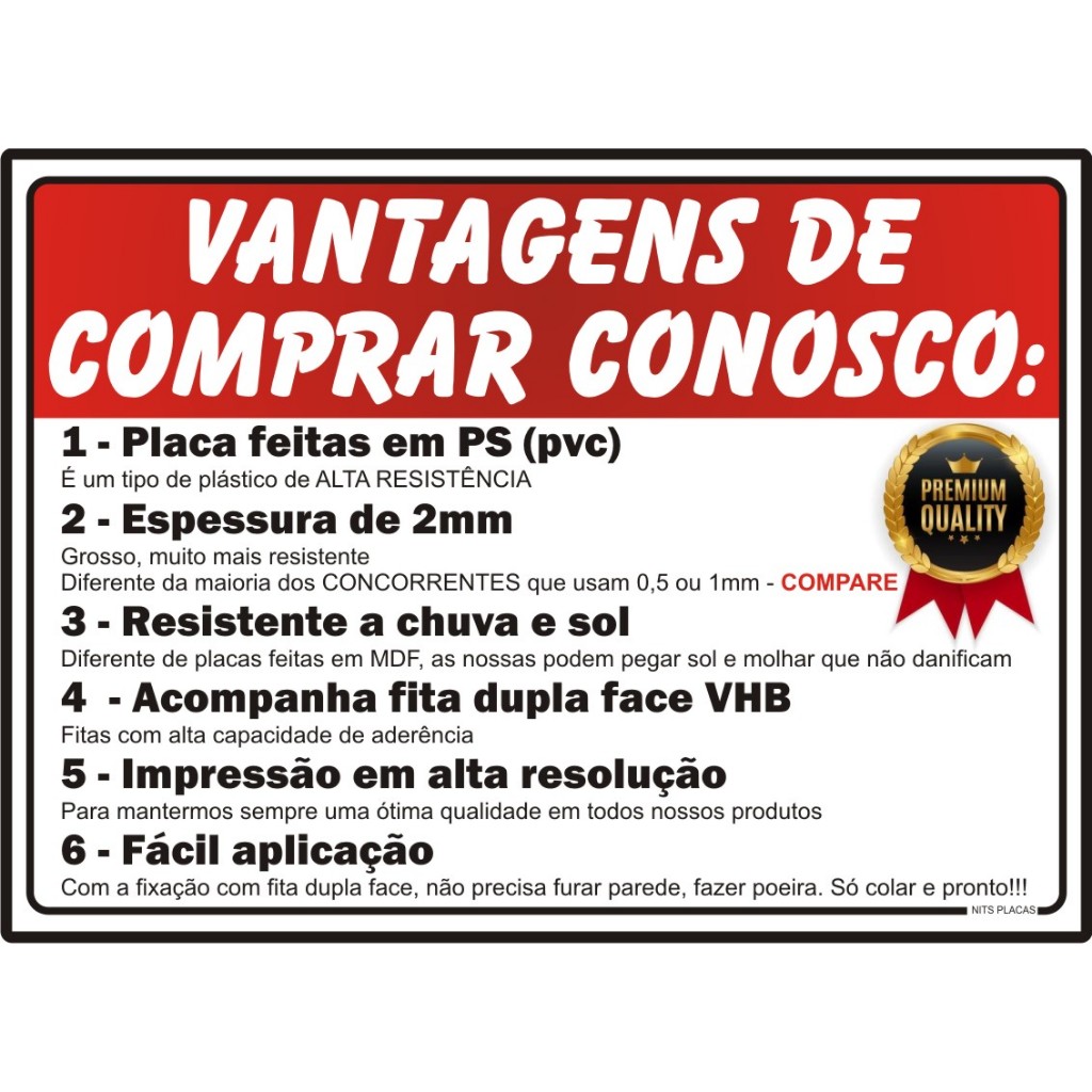 Dê um toque profissional e moderno ao seu espaço com esta placa decorativa personalizada em PVC. Perfeita para garagens, oficinas, lava jatos ou espaços de trabalho, trazendo estilo e personalidade ao ambiente. após a compra MANDE SUA LOGO no chat IMEDIATAMENTE e retorne para Aprovação do modelo que lhe enviaremos Qualquer duvida pergunte no CHAT NÃO CRIAMOS A LOGO. Fazemos as placas com a logo fornecida pelo cliente. Caso não tenha, fazemos somente com escrita simples. DESCRIÇÃO DO PRODUTO: - Material: Poliestireno (PS) 2mm - Impressão de alta definição - Revestimento: Pelicula de proteção - Adesivo Brilho impresso - Cor: 4x0 (colorido frente) - Tamanho: C***arro 40x13cm M***oto 20x17cm - COM LAMINAÇÃO (Proteção especial anti-riscos) - COM ELÁSTICOS para fixação ESPECIFICAÇÕES: - Produto Novo - Excelente Qualidade - Fácil instalação *** ATENÇÃO *** PODEM OCORRER VARIAÇÕES DE CORES - A cor impressa pode variar em até 20% de acordo com o tipo de monitor, calibração, etc. Nenhuma empresa consegue garantir 100% de fidelidade entre cores do monitor ou celular e produto real. ___________________________________________ IMPORTANTE: * Utilize o campo de perguntas e tire todas as suas dúvidas antes da compra. APÓS APROVAÇÃO DO LAYOUT A RESPONSABILIDADE POR QUALQUER ERRO É DO COMPRADOR, POR SER UM PRODUTO PERSONALIZADO NÃO SERÁ TROCADO. Após a compra você nos envia sua arte e faremos as verificações. Se a qualidade estiver boa e o arquivo puder ser utilizado vai direto para produção. Se verificarmos a necessidade, faremos ajustes para evitar problemas durante a produção e enviaremos antes para sua aprovação. O PRAZO DE PRODUÇÃO É DE 03 a 04 DIAS, MAS NO ANUNCIO ESTÁ 10 DIAS PORQUE ALGUNS CLIENTES DEMORAM A APROVAR O MODELO, PORTANTO, QUANTO MAIS RÁPIDO VOCÊ ENVIAR A ARTE E APROVAR, MAS RÁPIDO ENTRARÁ NA PRODUÇÃO E LHE ENVIAREMOS.