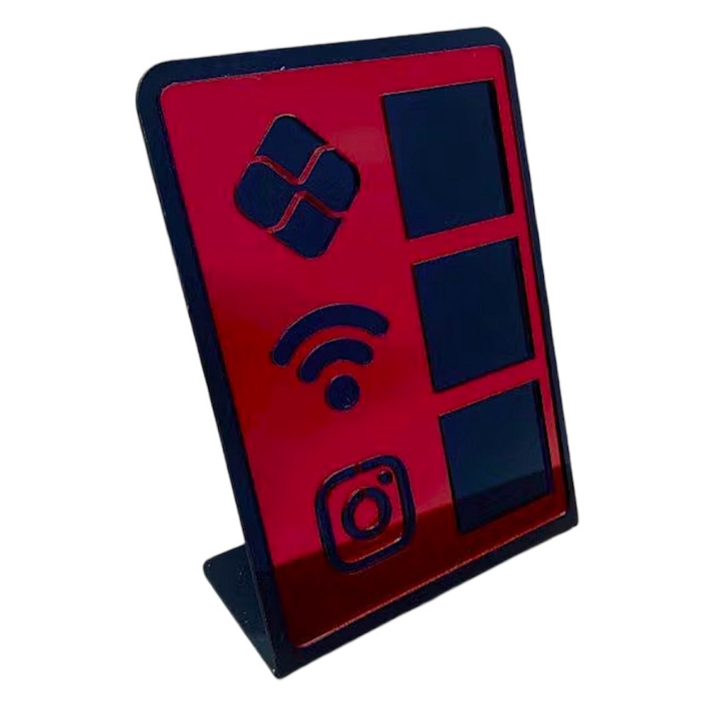 Placa Pix Acrílico Display Mesa Balcão - PIX, WI-FI e INSTAGRAM - MODERNO QR CODE