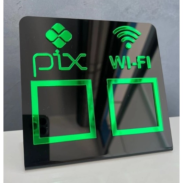 Placa Pix Display Acrílico Mesa Balcão Pix e Wifi Expositor Qr Code