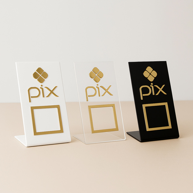Placa Pix Pagamento QrCode De Mesa Balcão c/ base em Acrílico