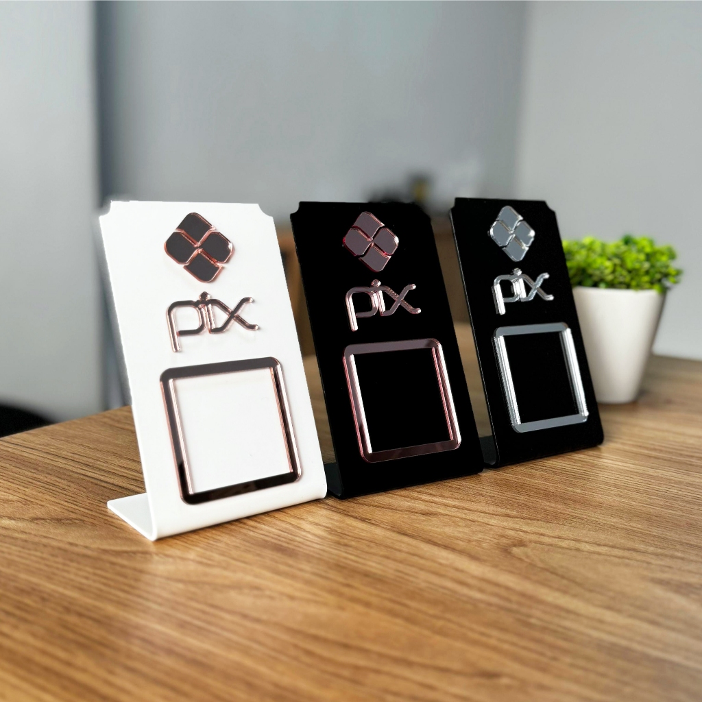 Placa Pix Pagamento QrCode De Mesa Balcão com base - Acrílico - Rose Dourado Prata tem cupom de desconto?