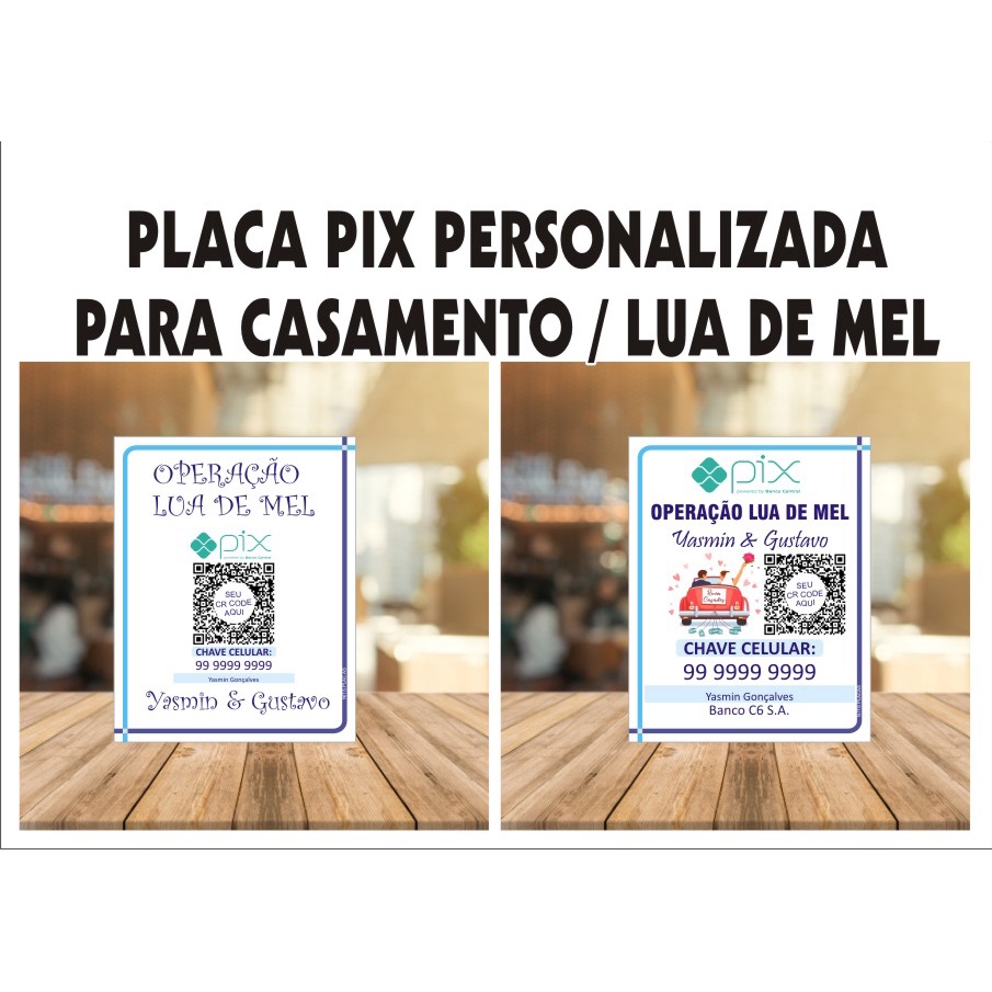PLACA PIX PERSONALIZADA com QR CODE - plaquinha pix casamento lua de mel motorista aplicativo mercado loja