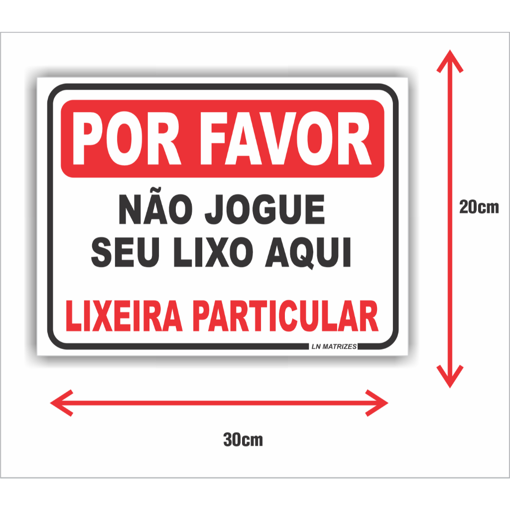 PLACA POR FAVOR NAO JOGUE SEU LIXO AQUI ( LIXEIRA PARTICULAR )