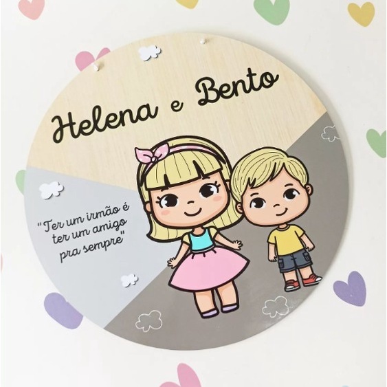 Placa porta maternidade - IRMÃOS - Quadro Redondo - PERSONALIZADO COM NOME \\\**FOTO REAL DO PRODUTO FEITO POR NÓS! **/// \\\** SAIBA EXATAMENTE O QUE ESTÁ COMPRANDO!** /// \\\** VEJA NOSSAS AVALIAÇÕES!**/// *Após a compra, enviar mensagem para o vendedor, informando qual será os nomes e os bonequinhos escolhidos ( OS MODELOS ESTÃO NAS FOTOS NO ANÚNCIO) _________________________ TAMANHO DA PLACA: 25CM de diâmetro ou 29CM de diâmetro. Feito em MDF 3mm e papel fotográfico laminado, para garantir as cores do produto e não desbotar. _________________________ Já vem com fio para pendurar. Fio na cor branca. _________________________________________________ É POSSIVEL ALTERAR A COR DO FUNDO! ENVIAR MENSAGEM PARA O VENDEDOR SOLICITANDO A TROCA. FAZEMOS QUALQUER TEMA! Não gostou dos temas da foto? Nos envie uma mensagem que fazemos um tema especial para você, com a imagem que quiser! __________________________________________________________ Quarto Infantil - Quarto de Bebê - Criança- Menino - Menina - Nome - mdf - placa - plaquinha - quadro - enfeite - nascimento - maternidade - gravida - gravidez- gestantes - maternidade - porta maternidade - decoração quarto bebê - quarto de menino - quarto de menina - quadros - enfeite maternidade - recém nascido - decoração bebê - decoração irmãos - quadro irmãos -