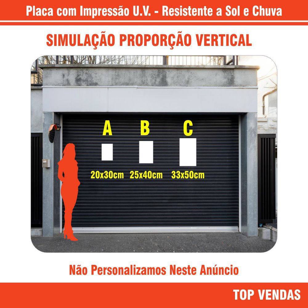 Placa Proibido Estacionar Símbolo Garagem Por Favor Não Estacionar na Frente Portão ESCLAREÇA SUAS DÚVIDAS ANTES DE EFETUAR A COMPRA. A fixação pode ser feita com fitas dupla face que já acompanham o produto ou furos para abraçadeira de nylon, arame ou parafuso que deve ser feito pelo cliente. Material de fácil furação e aplicação podendo utilizar um objeto pontiagudo. Especificação Técnica: Tamanho: Diversos Material: Plástico - PS (Poliestireno) 1mm de espessura Impressão Digital de Cura UV Diretamente na Placa, Não é Adesivo! Produto de alta qualidade, ideal para ambientes internos e externos. - Alta Qualidade e Resolução. - Cores Vivas - Ótimo Acabamento Tenha tranquilidade ao comprar com quem está disposto a lhe oferecer o melhor atendimento, caso tenha alguma problema após a compra, conte com nossa equipe de pós-venda para solucioná-lo. Confira nossos outros produtos e economize no frete.