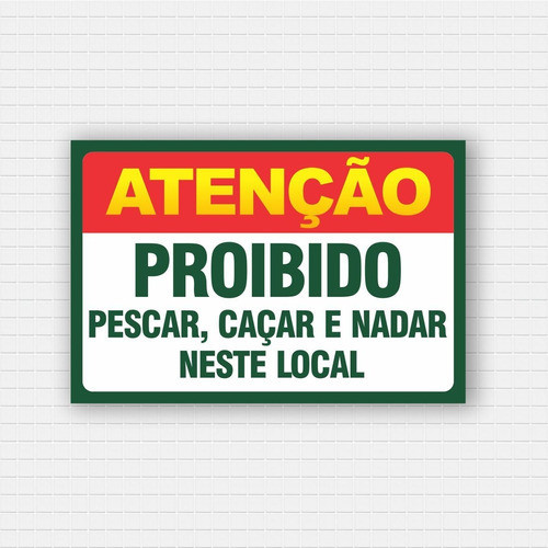 Placa Proibido Pescar, Caçar E Nadar 30x20 Ps Resistente a Chuva e Sol Para Chacaras Lagos