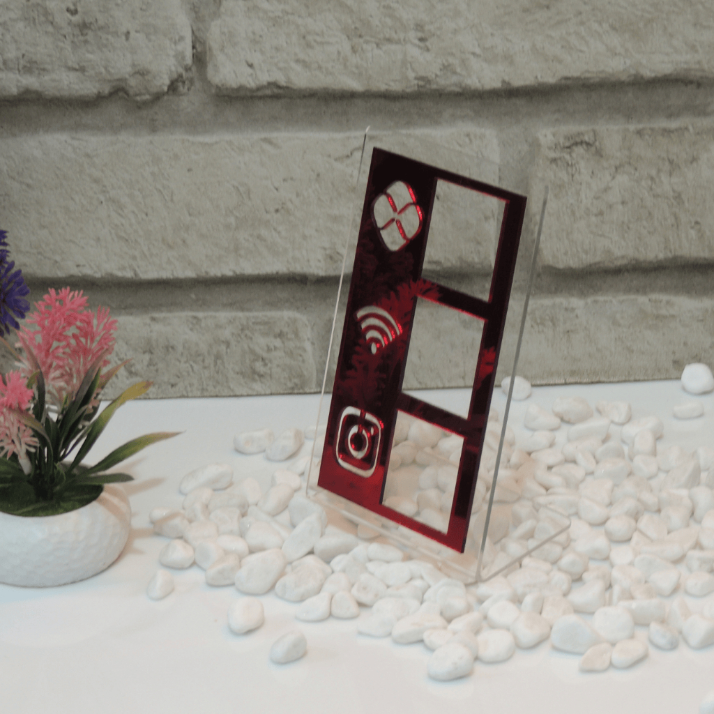 Placa QR Code Pix Wifi Instagram 15,5x9,5cm em Acrílico Colorido Premium