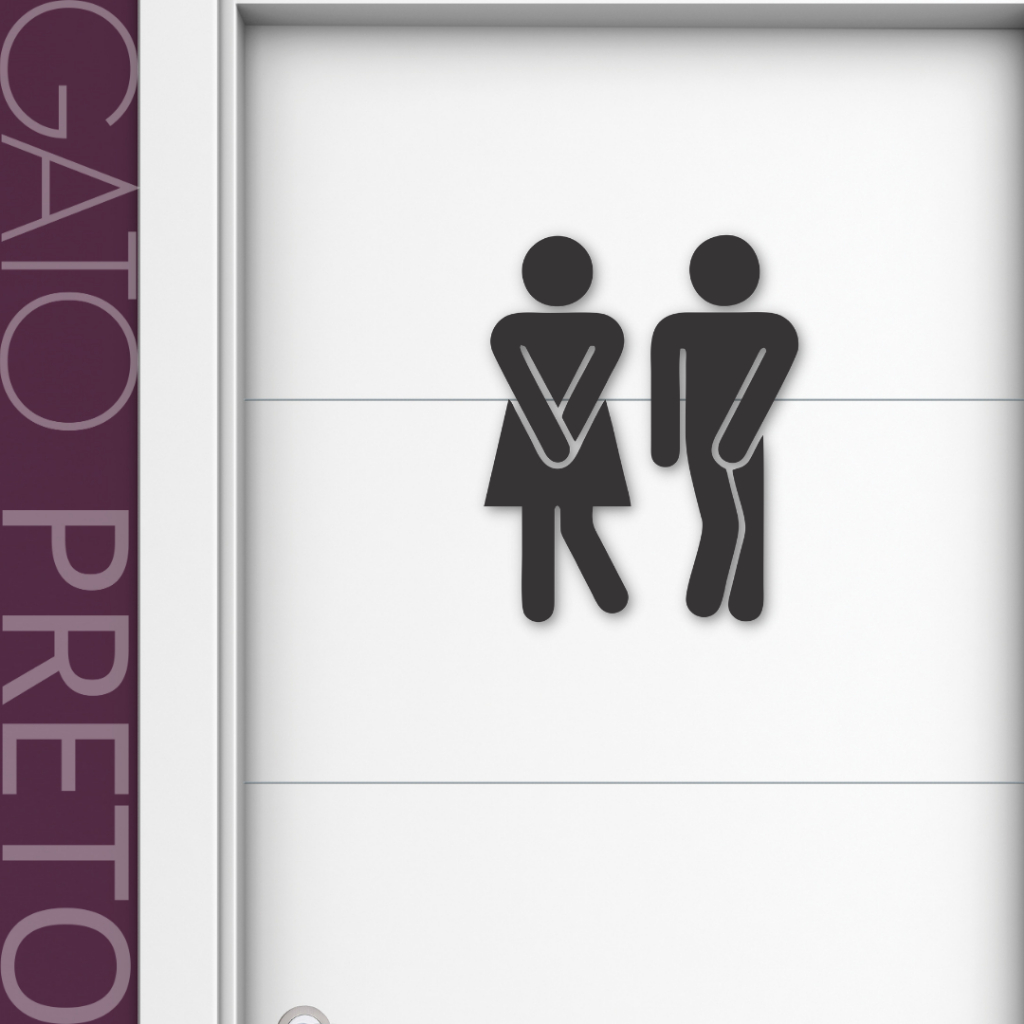 Placa Quadro Apertados Banheiro Sinalização Engraçada Autocolante Madeira MDF Preto Fosco Com Fita Dupla Face
