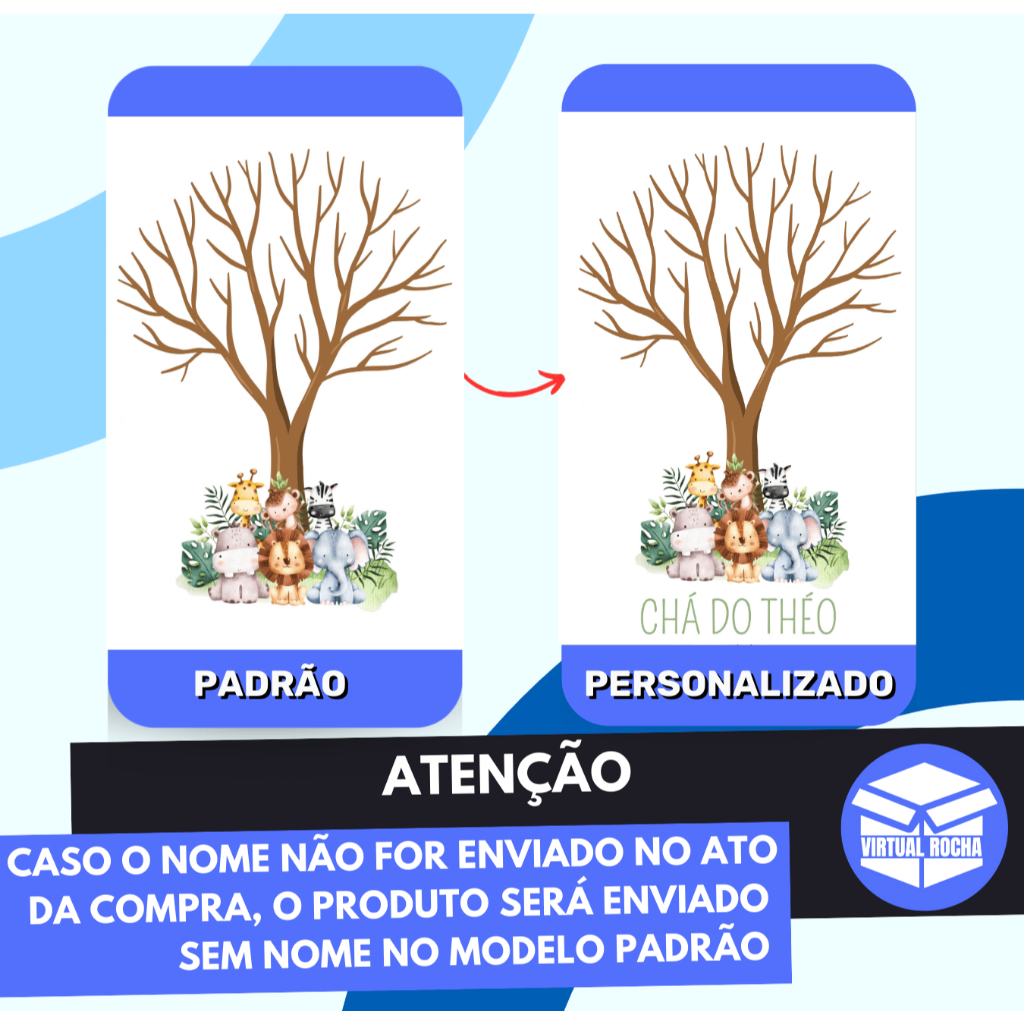 Placa Quadro De Recepção Chá de bebê de fraldas Árvore Digitais Chá Safari Arvore Marrom