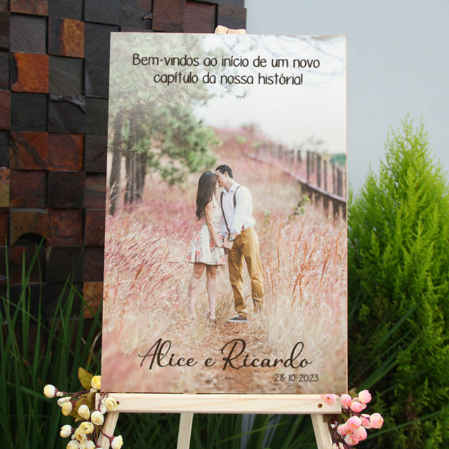 Placa Recepção Foto casal ensaio pré-wedding noivos Personalizada 40x60cm