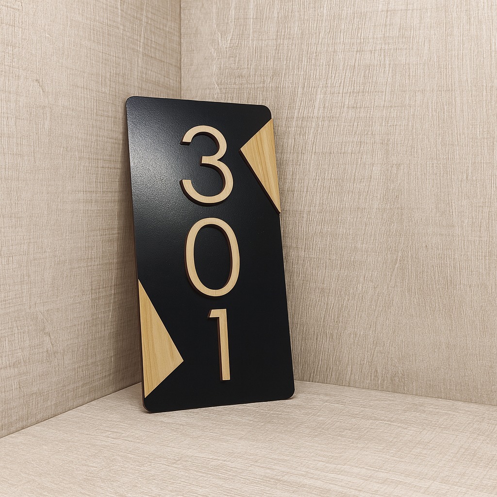 Placa Residencial MDF Número de Porta Personalizado Alto Relevo 3d Parte Interna