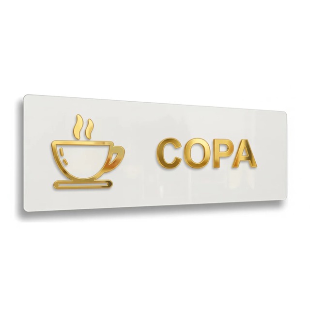 Placa Sinalização Identificação Copa Acrílico Espelhado Dourado