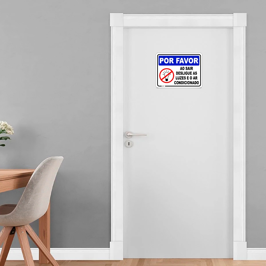 Placa Sinalização Por Favor Ao Sair Desligue Luzes e Ar Condicionado Economia de Energia