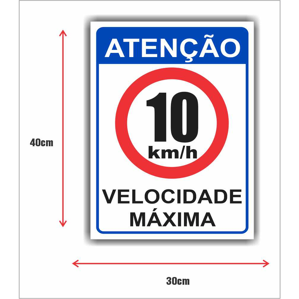 Placa Velocidade Máxima 10km/h ( 30x40 / 20X30)cm
