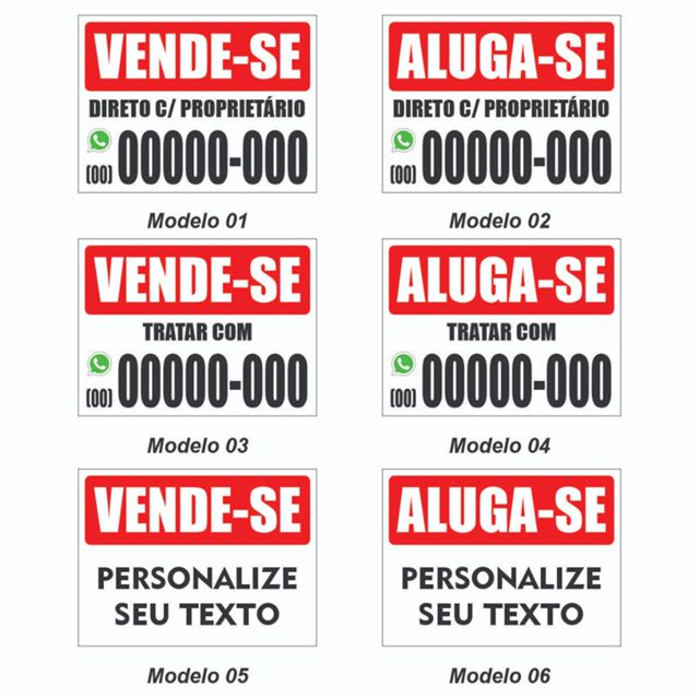 Placa Vende-se ou Aluga-se Personalizavel - Imóvel Terreno Casa Apartamento Produtos - Proprietário