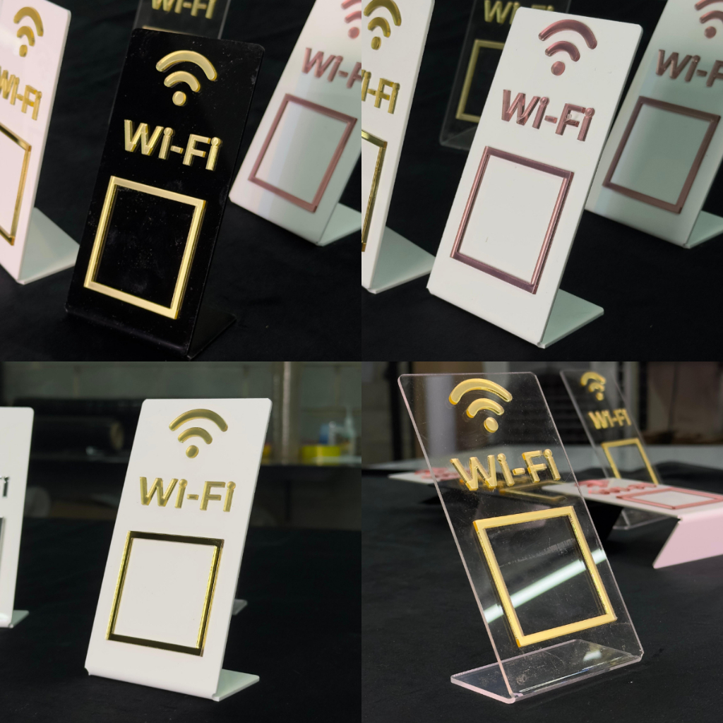 Placa Wifi Display Acrílico Espelhado QR Code Mesa Balcão