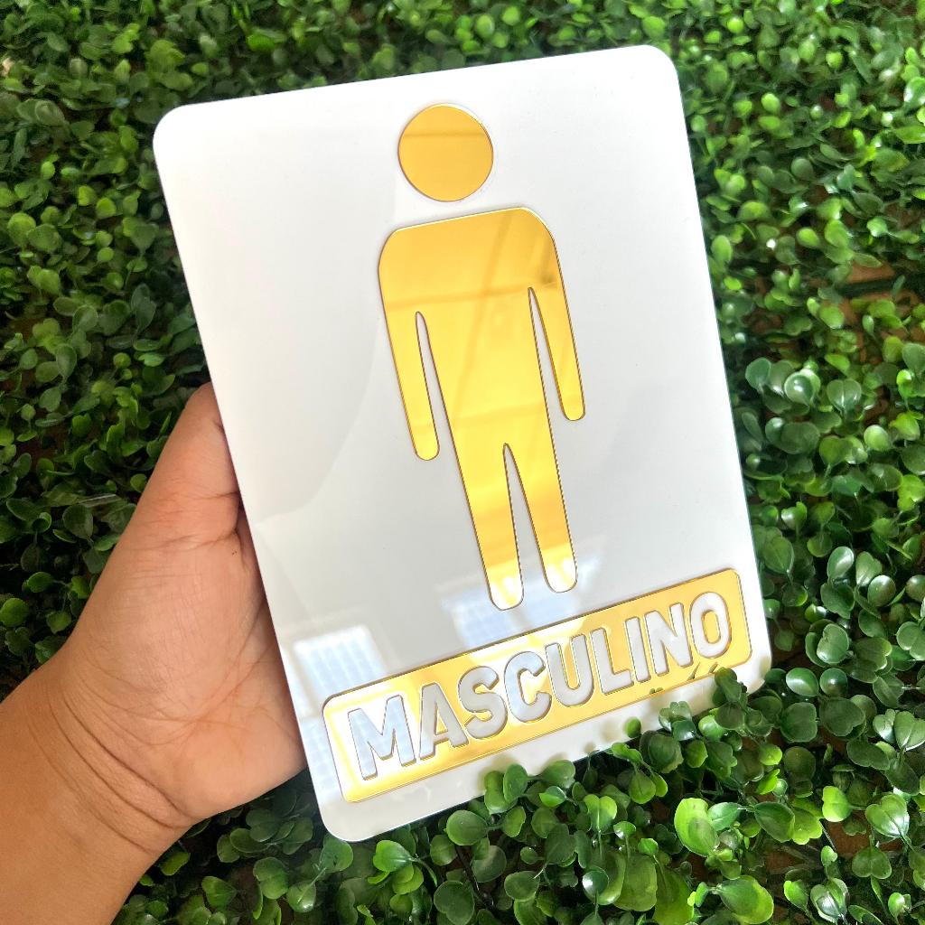 Kit de placas de sinalização decorativas para banheiro / sanitários. --------------------------- Deixe seu ambiente ainda mais sofisticado com esse kit exclusivo de 2 placas (masculino e feminino). Produzidas em acrílico de alta qualidade, cada peça possui base de 2mm e letras em acrílico espelhado, trazendo um acabamento moderno e elegante. 📐 Tamanho individual: 15x20 cm (cada placa) ✔ Acompanha dupla face para fixação ✔ Ideal para portas, banheiros, estabelecimentos ou decoração criativa. ✔ Design minimalista e resistente. ✔ Produto pronto para transformar qualquer espaço. Garanta já o seu kit!
