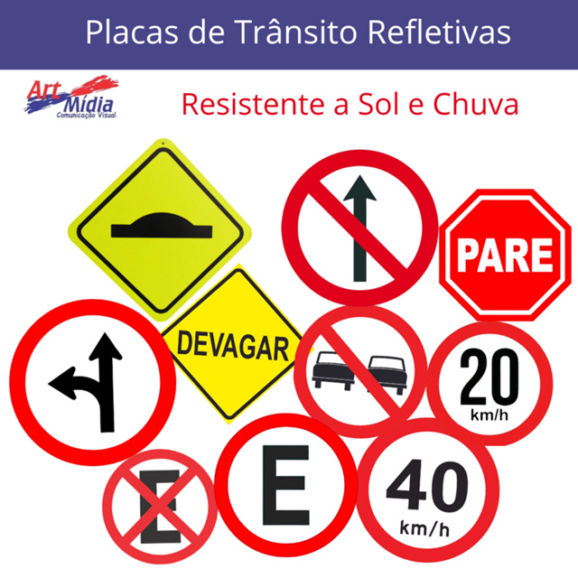 Placas De Transito 40x40cm Refletivo ACM e PS Resistente a Sol e Chuva Alta Visibilidade Dia e Noite