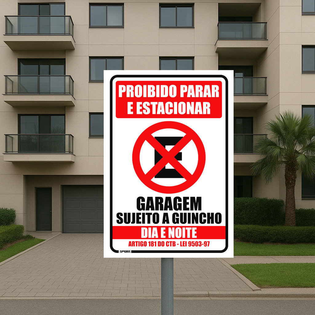 Placas Proibido Parar e Estacionar Lei 20x30 Portão Garagem