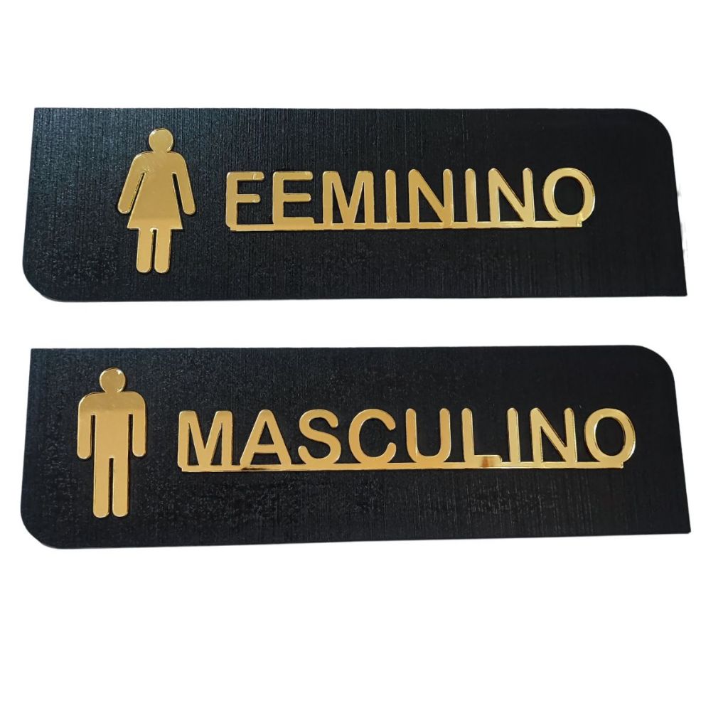 Placas Sinalização Banheiro Decoração WC Masculino Feminino Unissex MDF Acrilico