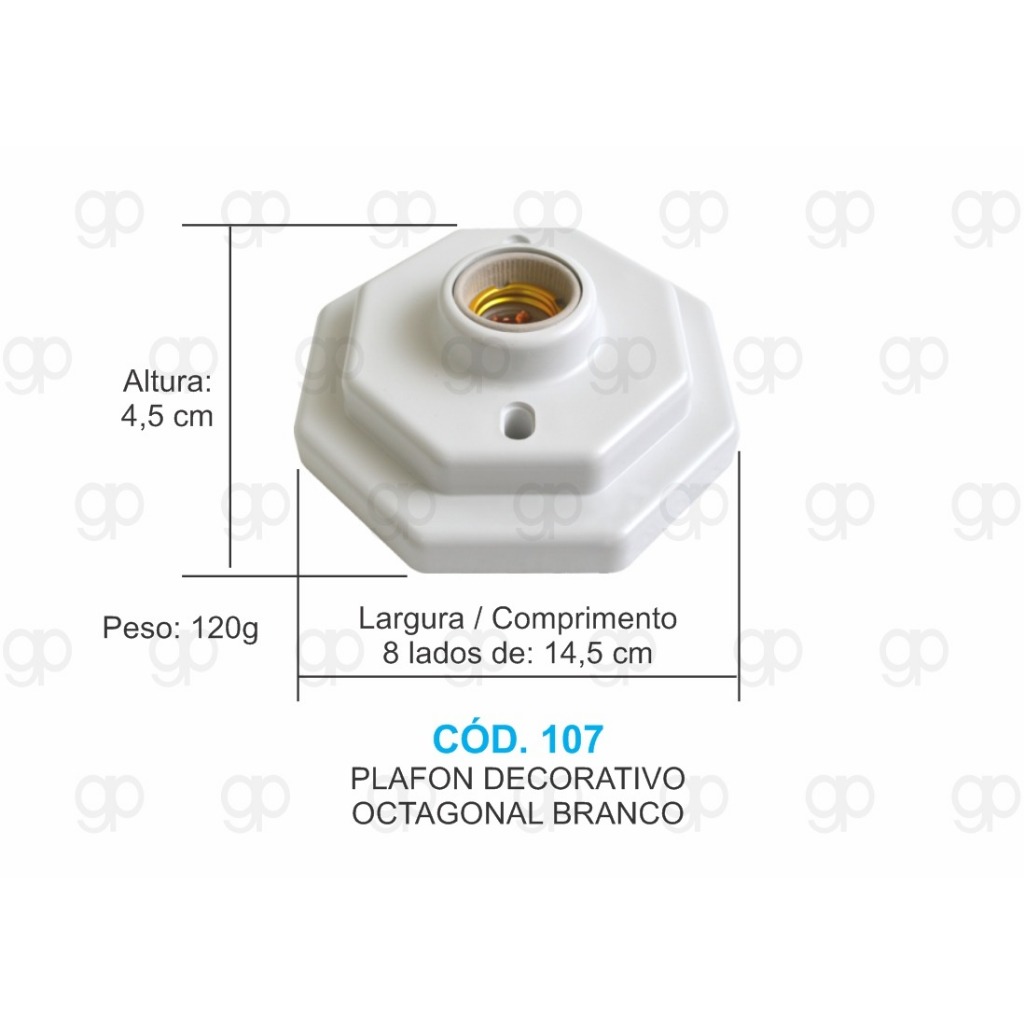 PLAFON OCTAGONAL SOBREPOR SOQUETE PORCELANA E27- AREA INTERNA TETO - GAZPLAST