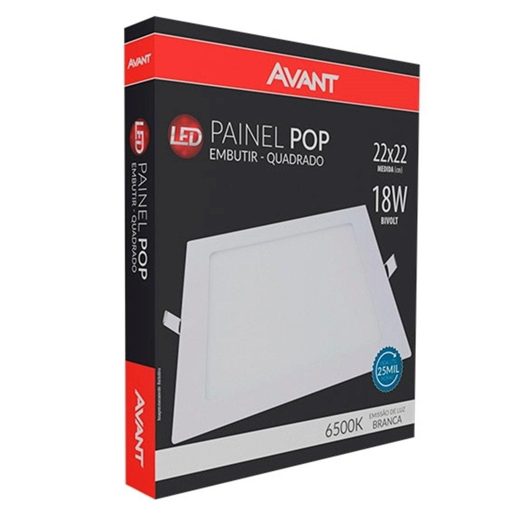 Plafon Painel Avant Led 22cm Quadrado Embutir 1260 Lumens 6,5K 18W Bivolt
