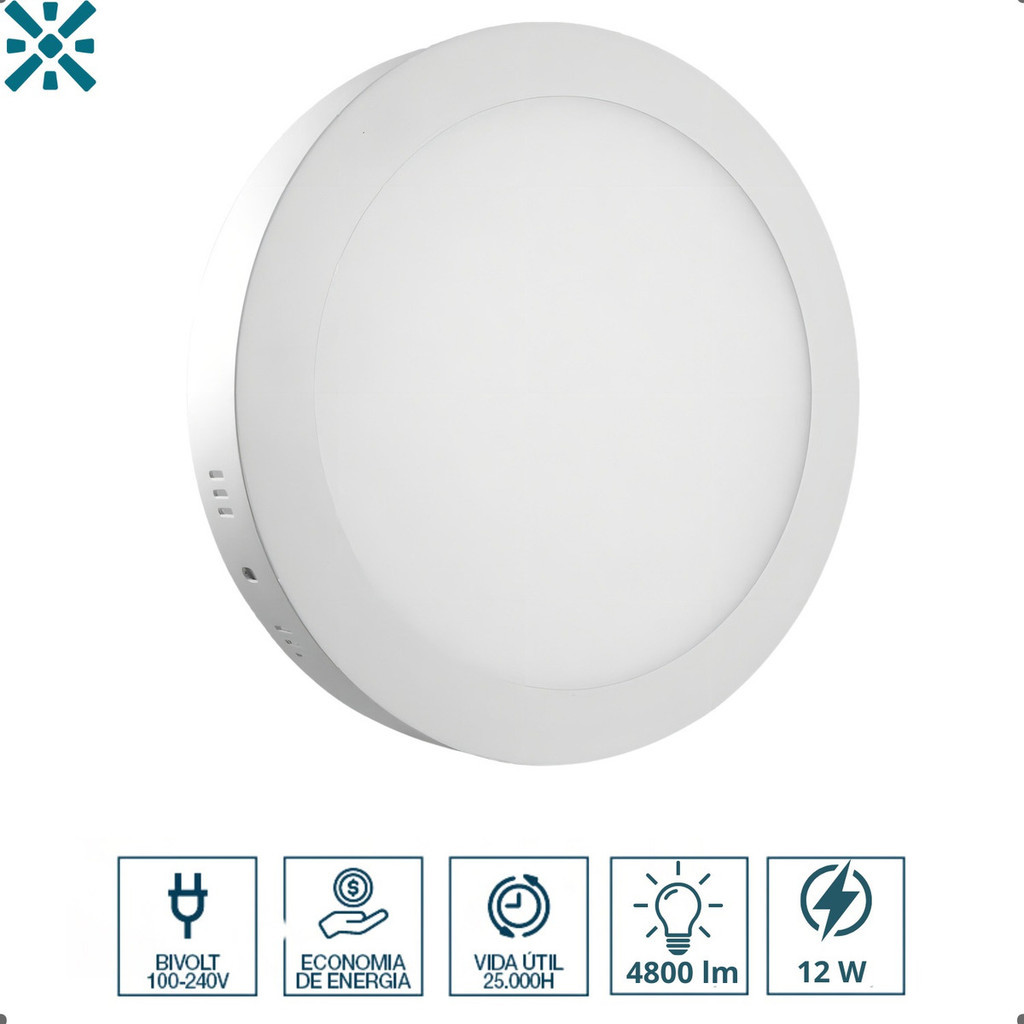 Plafon Painel Redondo Sobrepor Led 12w Bivolt 6500k