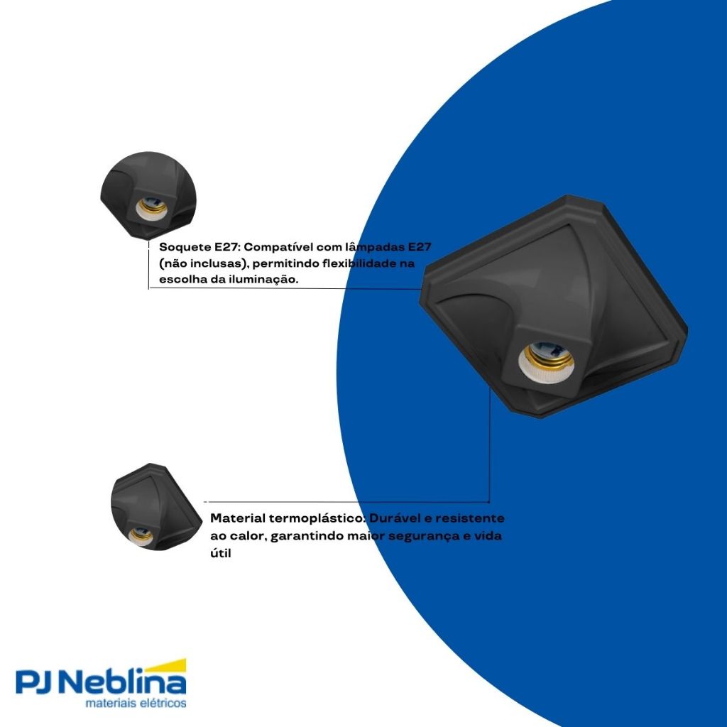 Plafon Sobrepor Diâmetro 12Cm Quadrado Termoplástico 60W E27 Preto Kin Light Com mais de 12 anos de experiência, a Kin Light oferece soluções de iluminação que combinam design inovador e qualidade a preços acessíveis. Atuamos em todo o Brasil, proporcionando produtos que transformam ambientes com estilo, bom gosto e personalidade. Ilumine sua criatividade com a Kin Light! CARACTERÍSTICAS: O Plafon Sobrepor Diâmetro 12cm Quadrado E27 Preto da Kin Light oferece um design compacto e moderno, com acabamento preto e base em termoplástico de alta durabilidade. Compatível com lâmpadas E27 (até 60W), é ideal para iluminar pequenos ambientes com eficiência e sofisticação. ESPECIFICAÇÕES TÉCNICAS: Marca: Kin Light Referencia: PL16/PTQD Produto: Plafon Sobrepor Dimensão: Diâmetro 12cm Modelo: Quadrado Material: Termoplástico Potencia (W): 60w Base: E27 Cor: Preto Lâmpada inclusa: Não Após o período de garantia da loja de 30 dias, a tratativa de garantia deverá ser diretamente com o fabricante. Garantia do Fornecedor: 30 Dias.