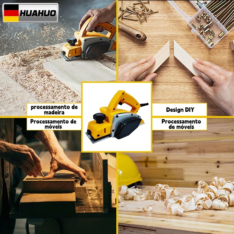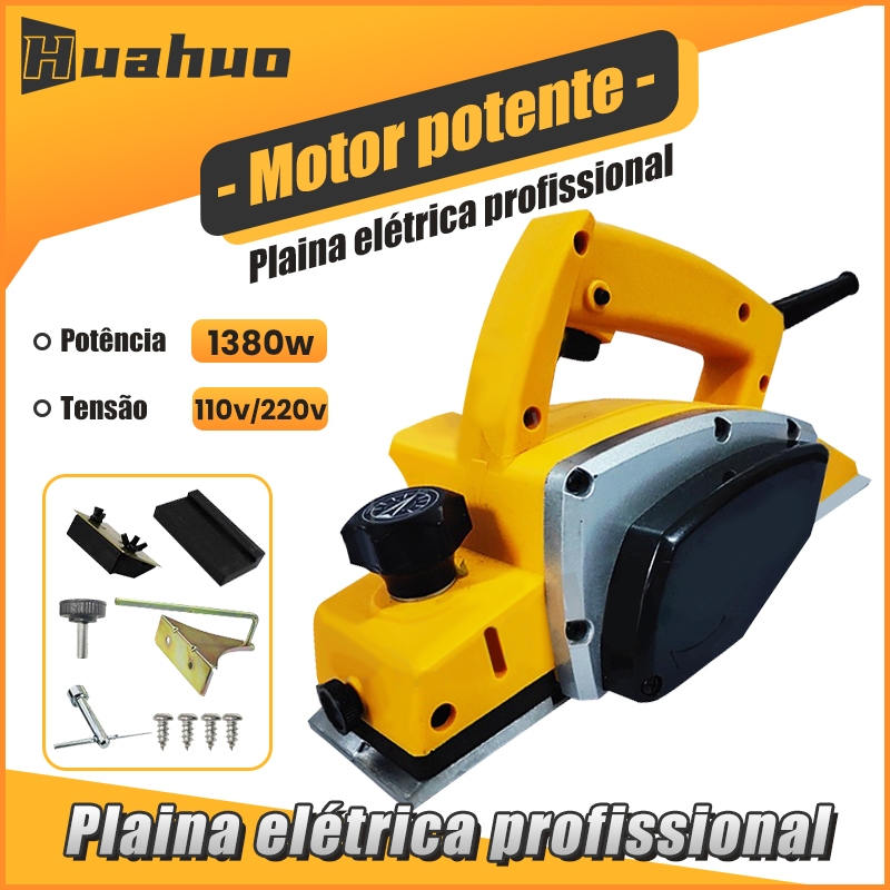 Planejador Elétrico Industrial HUAHUO 1380w 110v ou 220v Marca: HUAHUO Selecione A VOLTAGEM CORRETA NO MOMENTO DA COMPRA E NA COR DISPONÍVEL EM ESTOQUE Especificações técnicas: - Marca: HUAHUO - Potência: 1380watts - Velocidade -Velocidade: 15.000 rpm - Profundidade De corte por passagem: 1 mm - Largura De corte: 3,1/4" (82 mm) - Bloqueio do tigre -Trigger lock: sim - Frequência: 50-60hz - Vôo: 110V OU 220v - Peso: 2,6kg - Tamanho do cabo: 1,85 metros
