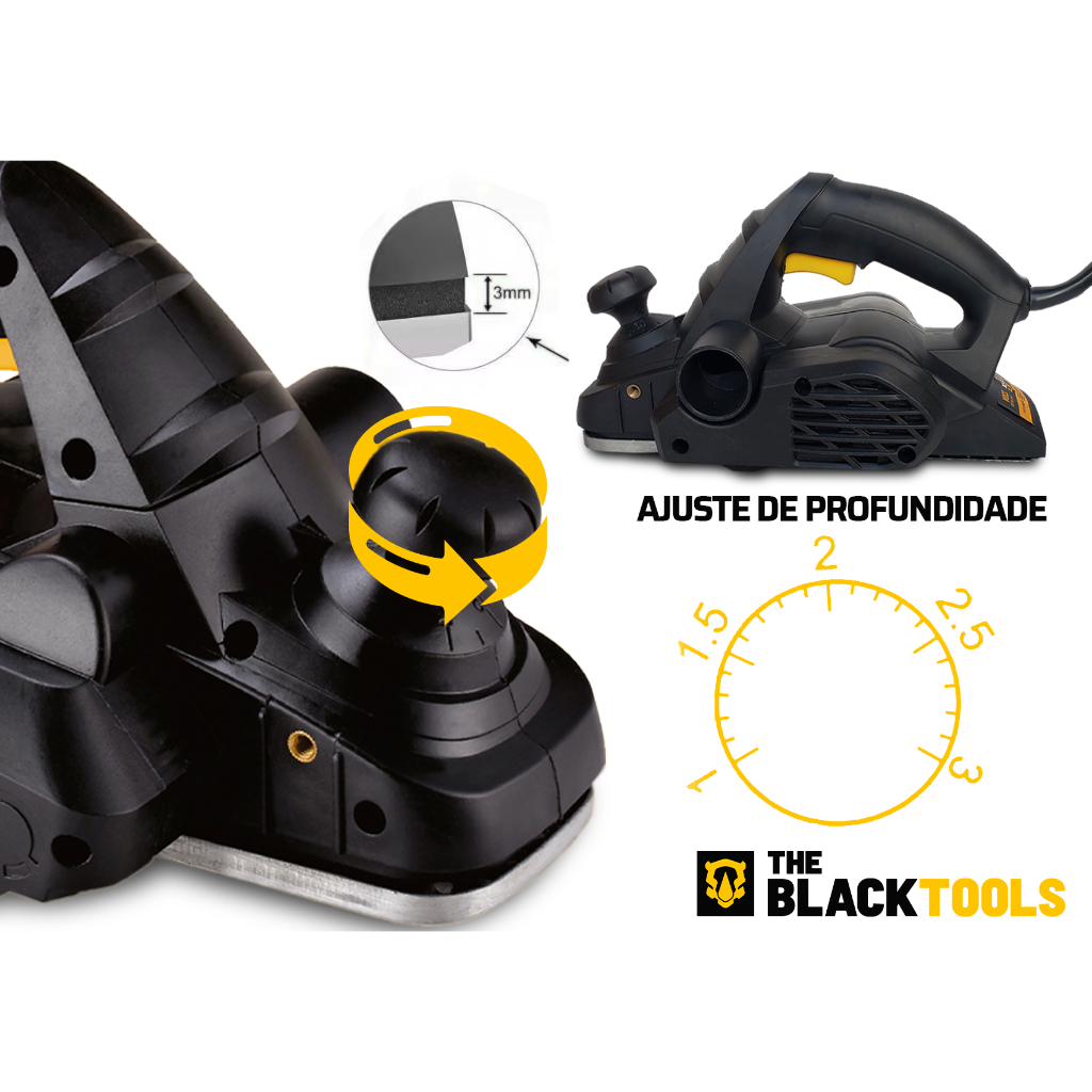 Plaina Elétrica Manual Profissional 780w 16500rpm 82mm The Black Tools Com Oculos