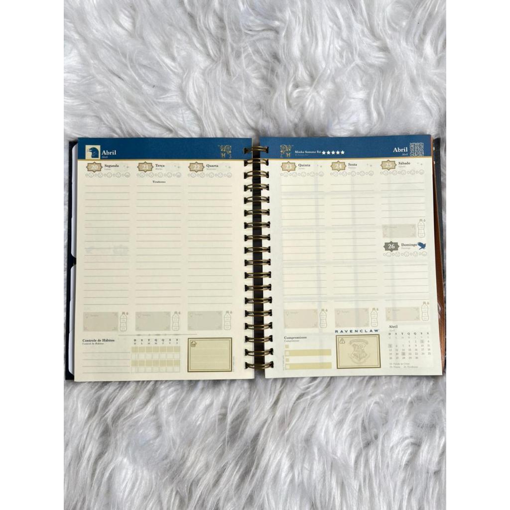 Planner 2026 Harry Potter Hogwarts aspiral dourado folhas organizaveis tamanho medio 160 paginas