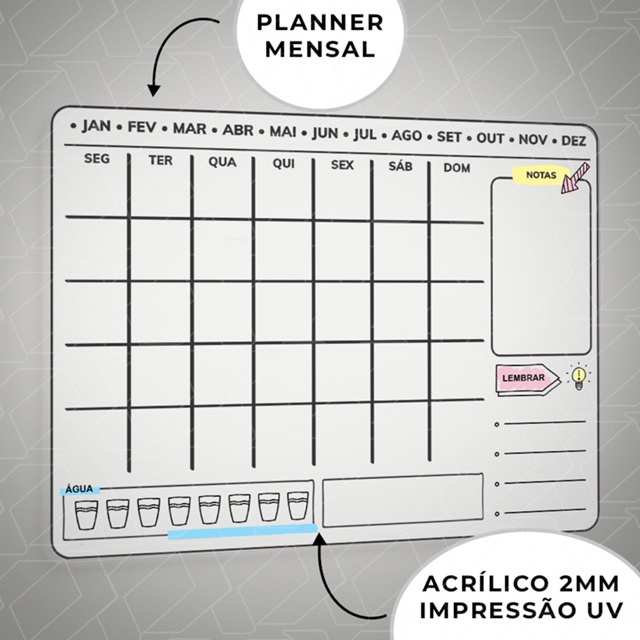 | Planner Acrílico Transparente Calendário Semanal e Mensal 50x35 40x... este produto | R$ 38,17 | 15% | 4.5/5 | 1 |