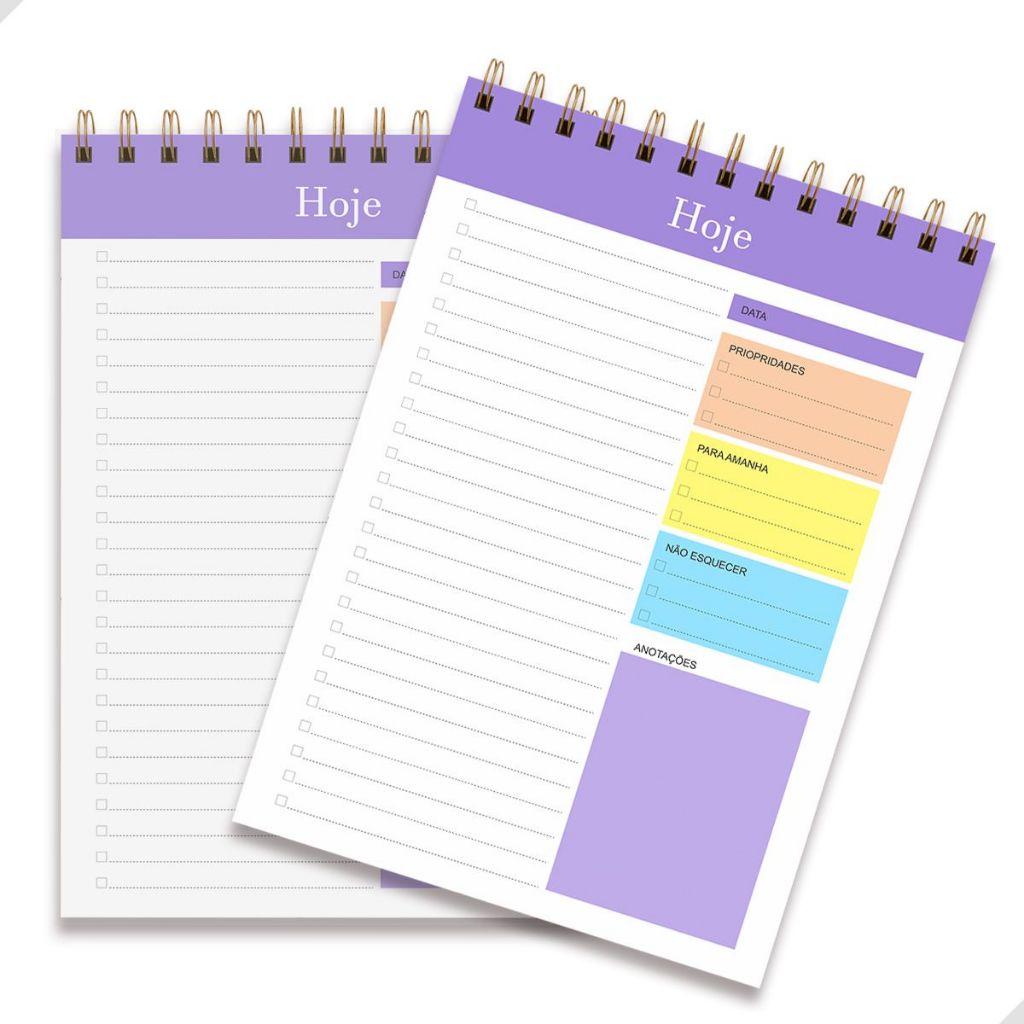 Planner Diário Colorido Espiral, 50 Fls, Organização de Tarefas, Produtividade p/ dia a dia trabalho