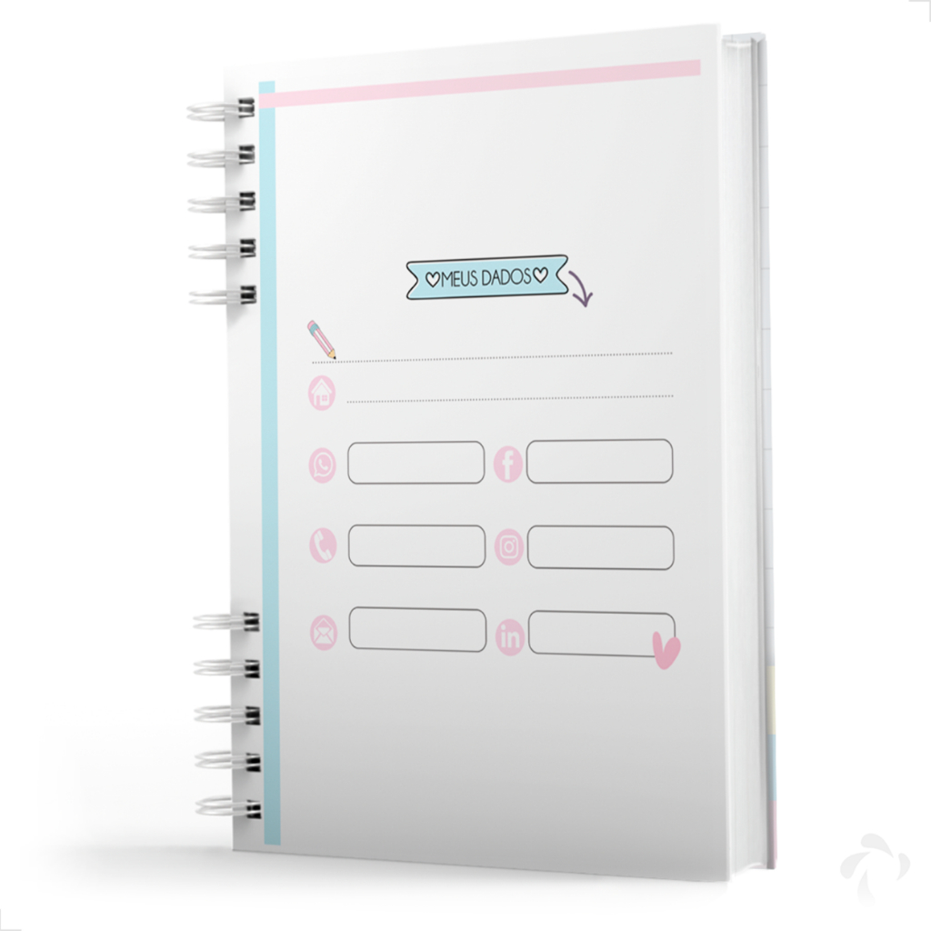 Lindo Planner para planejar sua semana e acompanhar suas finanças. A qualidade e acabamentos dos materiais com certeza é um grande diferencial de nossos produtos, temos 12 anos no seguimento prezando pela satisfação de nossos clientes. - Emitimos NF para todas as nossas vendas, sua compra aqui é garantida. Características do produto : Na primeira página, você poderá inserir todos os seus dados pessoais. Logo após, páginas para planejamento semanal e campos para você anotar prioridades e coisas importantes. E para uma rotina ainda mais organizada, espaço para anotações de objetivos, compromissos, coisas a fazer e organização das finanças (com entradas e saídas). Detalhes do Produto : - Capa dura com laminação (ajuda a proteger contra umidade e sujeiras) - Medidas da capa 21 x 15 cm (Sem contar medidas do arame) - Tamanho do miolo A5 (21 cm x 15 cm) - Cor do Miolo: Colorido - Encadernação com wire-o 2x1 branco - Acabamento - Fechamento com elástico - 134 páginas - Gramatura do papel = 75 g